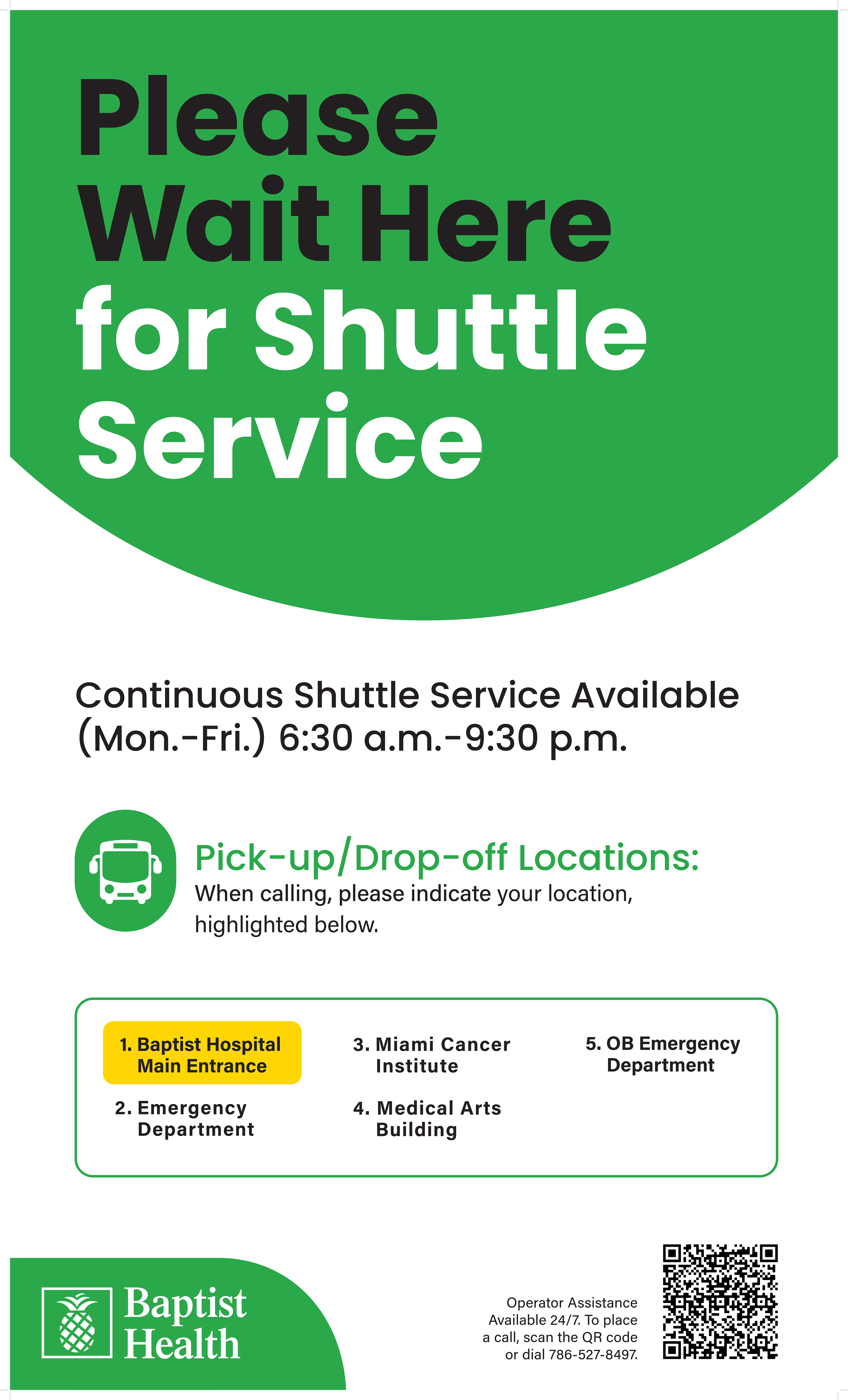 Shuttle pick-up & drop-off signage