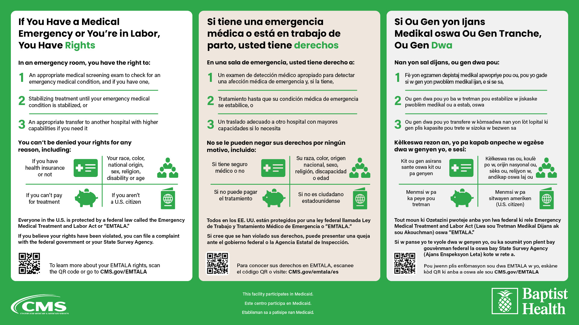 Trilingual signage expressing patient rights.