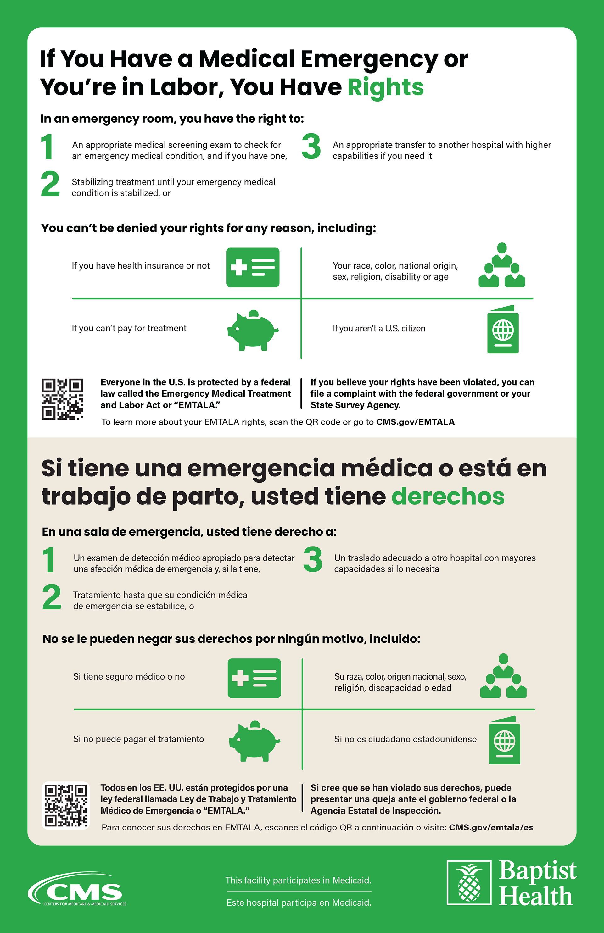 Bilingual signage expressing patient rights.