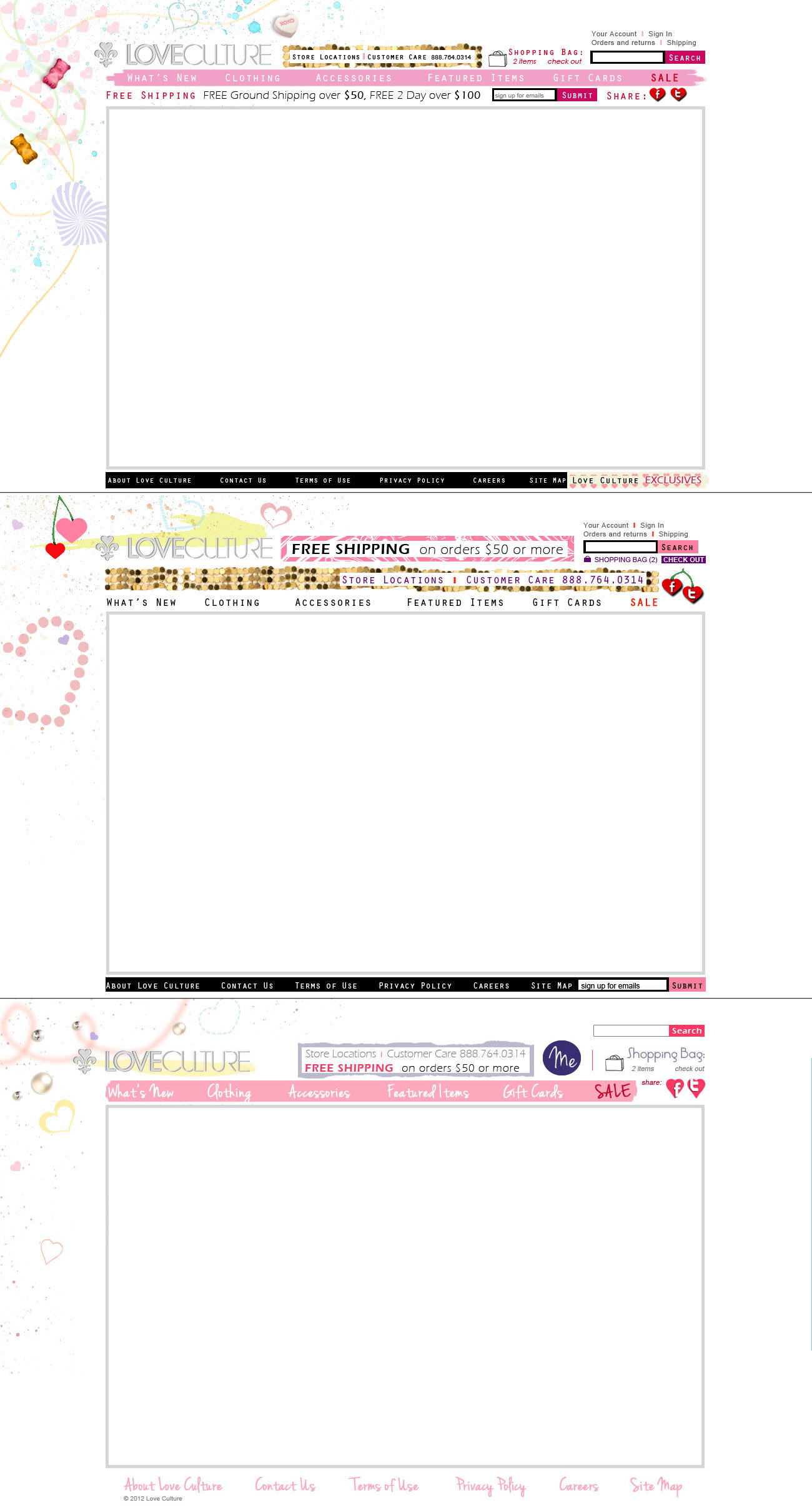 Proposal layouts for Love Culture, re-skin retail website.