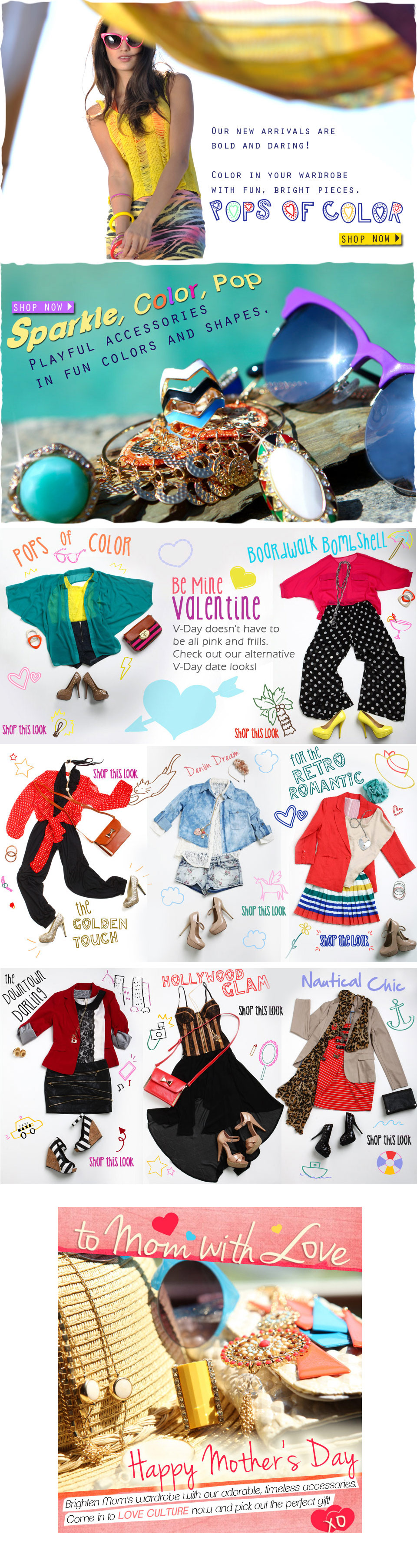 Email hero and banners for fast fashion brand Love Culture. Art Direction for flats.